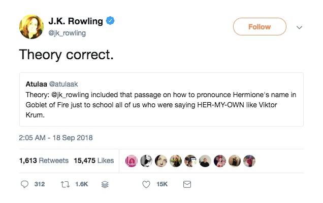 J K Rowling Poked Fun At Fans Who Couldn T Pronounce Hermione